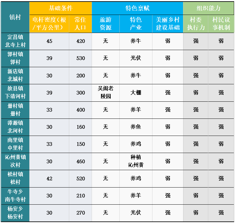 2.確定實施試點。按照“代表性、可復(fù)制性、示范性”原則,制定三方七項試點篩選標準(如表2),項目領(lǐng)導(dǎo)小組綜合考慮基礎(chǔ)條件、特色稟賦、組織能力等各方因素,選取故縣鎮(zhèn)供電所轄區(qū)下清河村為項目首個試點村(如圖3)。
