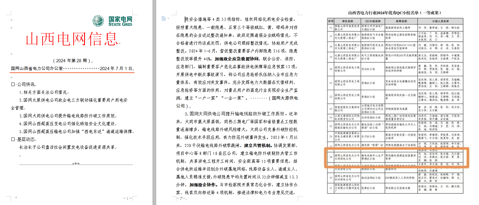 刊登《山西電網(wǎng)信息》2024年第28期,作為山西典型經(jīng)驗(yàn)做法全省宣傳推廣,先進(jìn)技術(shù)編寫課題獲得山西省電力行協(xié)QC成果一等獎(jiǎng)。發(fā)布公司系統(tǒng)網(wǎng)基層動態(tài)多篇,內(nèi)網(wǎng)平臺點(diǎn)擊量合計(jì)破萬?!拔辶Α狈劳馄圃谏轿魇?1家地市公司開展試點(diǎn),均取得了正向反饋。