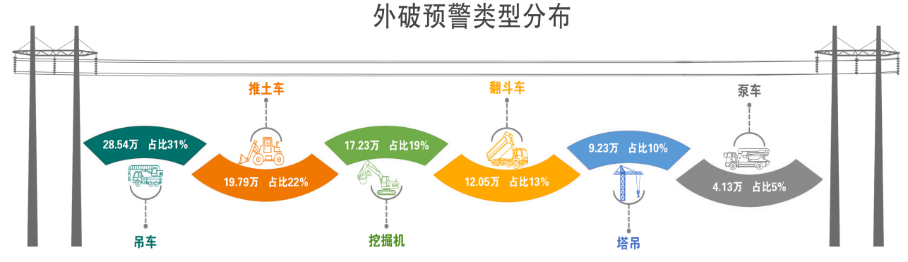 2023年國網(wǎng)山西省電力公司大同供電公司(以下簡稱大同公司)發(fā)生輸電線路外破事故5起,大型機(jī)械施工距離不足放電跳閘占比100%,企業(yè)施工點(diǎn)的爆發(fā)式增長與供電設(shè)施安全之間的矛盾愈發(fā)明顯: