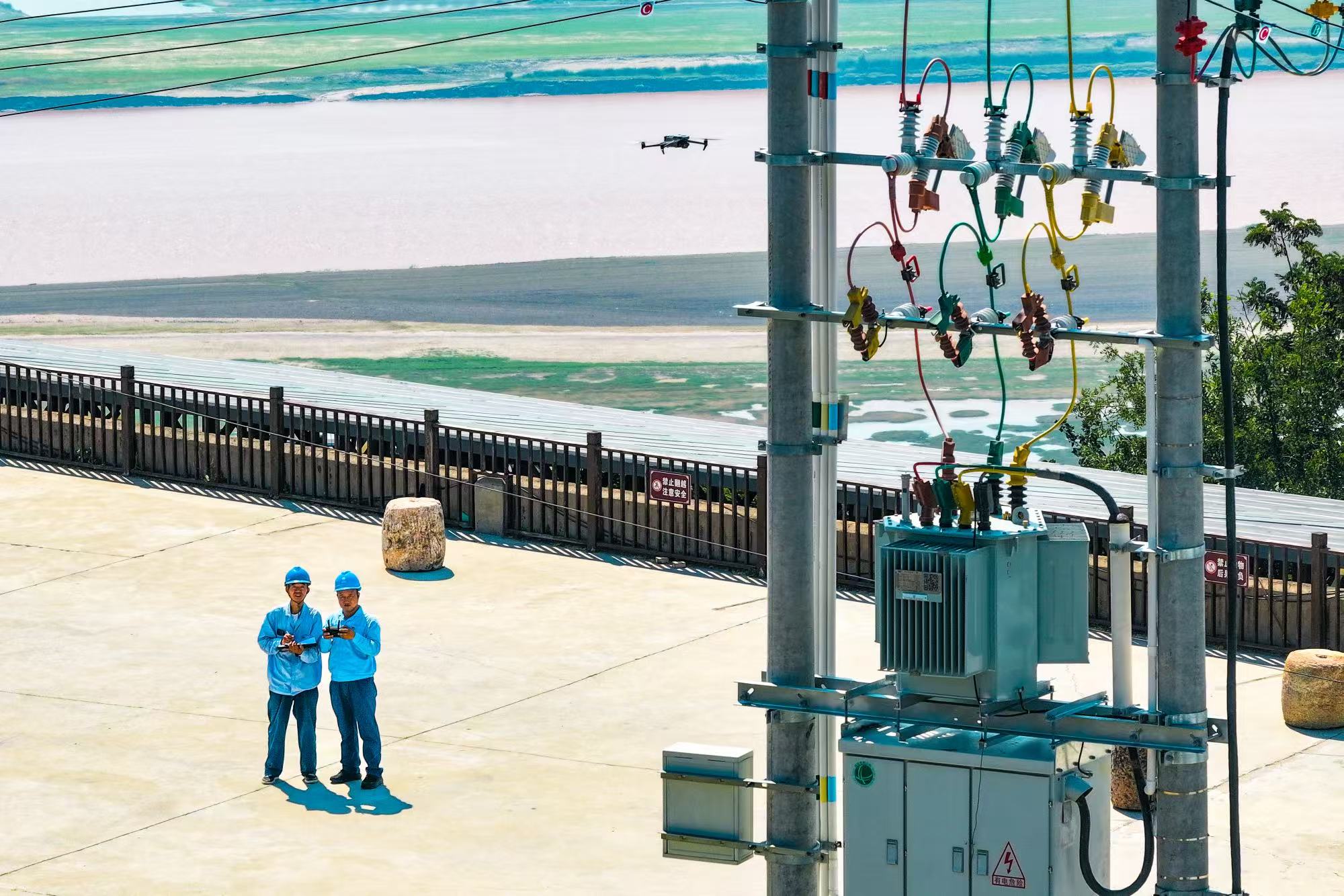 國網(wǎng)運城芮城縣供電公司員工正在對黃河岸邊的電力設施進行巡視