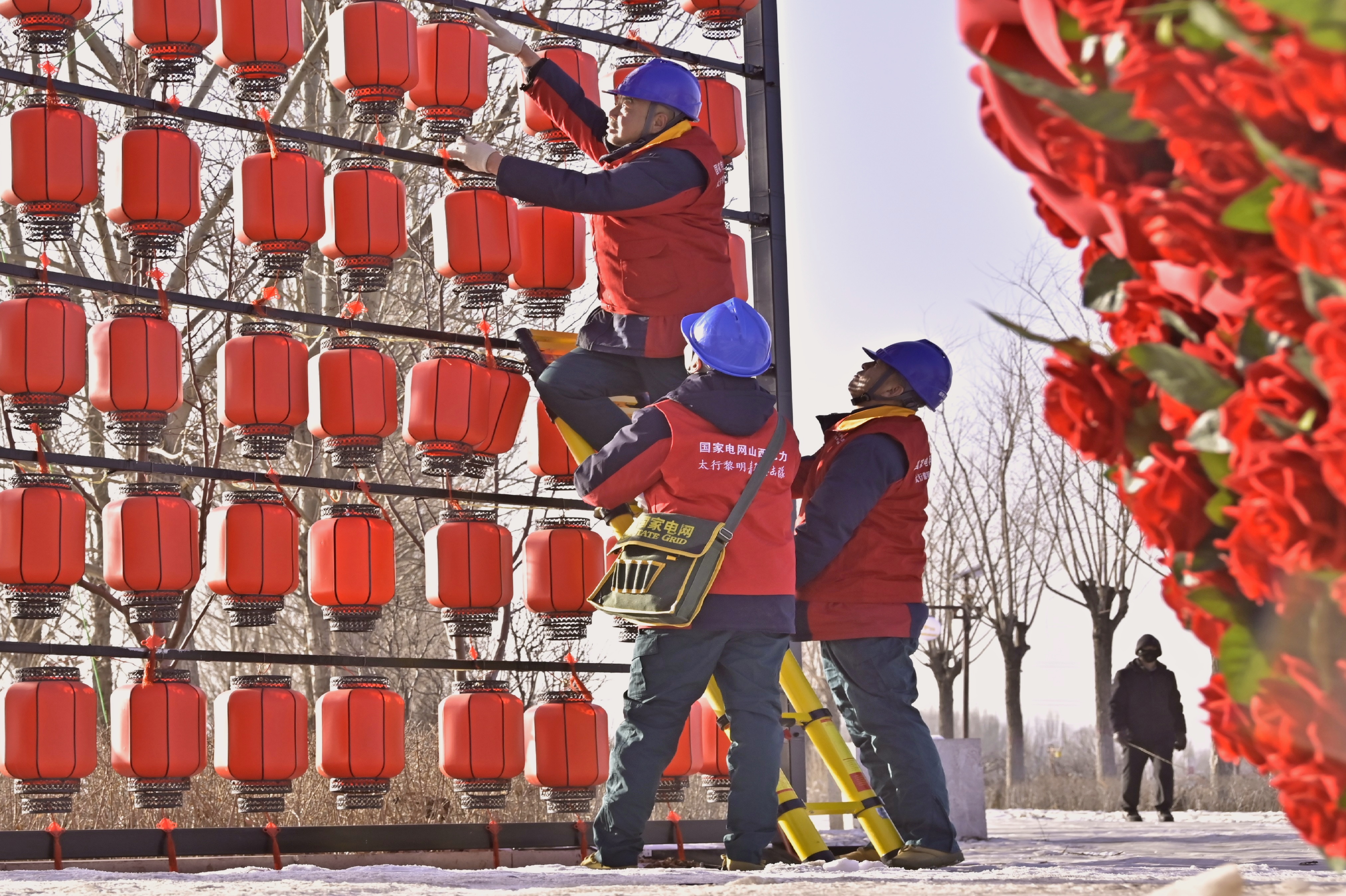 1月13日,國(guó)網(wǎng)大同供電公司員工在渾源縣神溪村協(xié)助用戶檢查“冰趣神溪 雪韻迎新”首屆冰雪節(jié)用電設(shè)施。