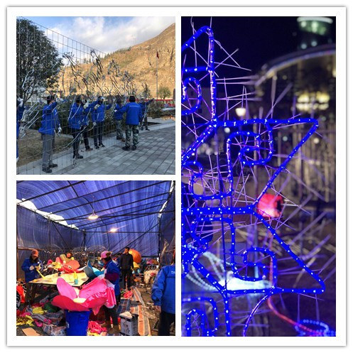 造型、切割、捆扎,機聲轟鳴,焊華飛濺,東方彩燈追夢人櫛風沐雨,任勞任怨,勤勞靈動的雙手從一個冬天,伸向另一個冬天,只為東方彩燈明媚汶川的春天?!洞髳蹮o疆》、《鳳凰涅槃》、《姜維城》、《大禹治水》、《格桑花開》、《康養(yǎng)汶川》等富含汶川民族文化和歷史底蘊特色的燈組已顯雛形。2018年新春,汶川將以半城青山半城燈的恢宏氣勢和璀璨絢爛向祖國和人民展示災后重建十周年的瑰麗畫卷。