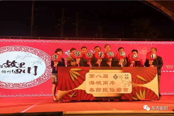 本屆海峽兩岸春節(jié)民俗廟會(huì)由中國(guó)友好和平發(fā)展基金會(huì)、中華文化聯(lián)誼會(huì)和四川省人民對(duì)外友好協(xié)會(huì)共同主辦,以“熊貓故里·錦繡四川”為主題的燈展由東方彩燈傾情打造?!督鸸肤[春》、《川劇臉譜》、《中華美食》等彩燈攜帶著四川記憶,譜寫出一首首璀璨旋律?,F(xiàn)場(chǎng)觀燈民眾置身于光影流轉(zhuǎn)、火樹(shù)銀花的燈影世界,品嘗著四川特色美食,觀賞蜀繡、青神竹編等“非遺”文化演藝,感知巴蜀文化的深遠(yuǎn)魅力,感受海峽兩岸血脈親情,兩岸同胞共度新春佳節(jié)。