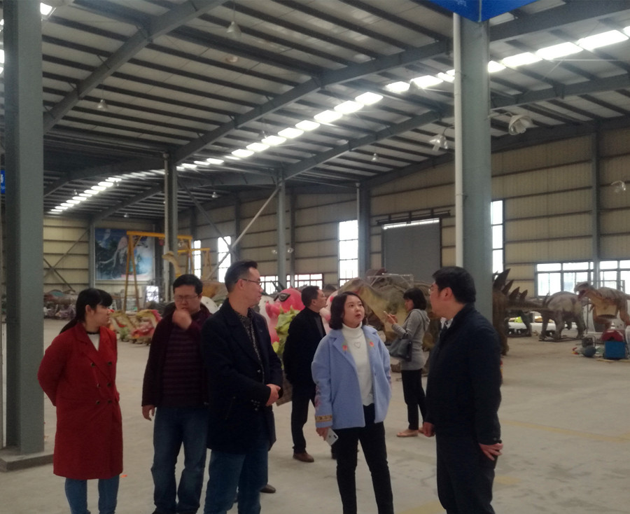吳曉軍一行在公司領(lǐng)導(dǎo)的陪同下參觀了東方彩燈出口基地,詳細(xì)了解了境外燈展燈品、仿真恐龍的制作工藝以及海運(yùn)的相關(guān)情況。隨后,吳曉軍一行來(lái)到燈貿(mào)集團(tuán)會(huì)議室,聽(tīng)取東方彩燈“走出去”的情況匯報(bào)。集團(tuán)公司董事長(zhǎng)劉婭就公司“東方彩燈·點(diǎn)亮世界”全球巡展項(xiàng)目、“燈會(huì)+”模式以及境外展出所面臨的困境作了全面介紹和匯報(bào)。