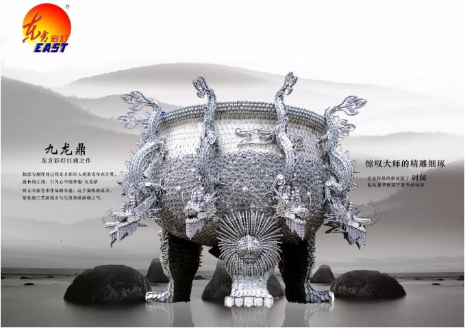 東方彩燈人構(gòu)思與制作的過程用著光年在計算,漫長的工期,只為心中的夢想——九龍鼎,樹立全新藝術(shù)作品的奇跡,近乎偏執(zhí)的追求,繁復(fù)的工藝展現(xiàn)出與生俱來的磅礴之氣。