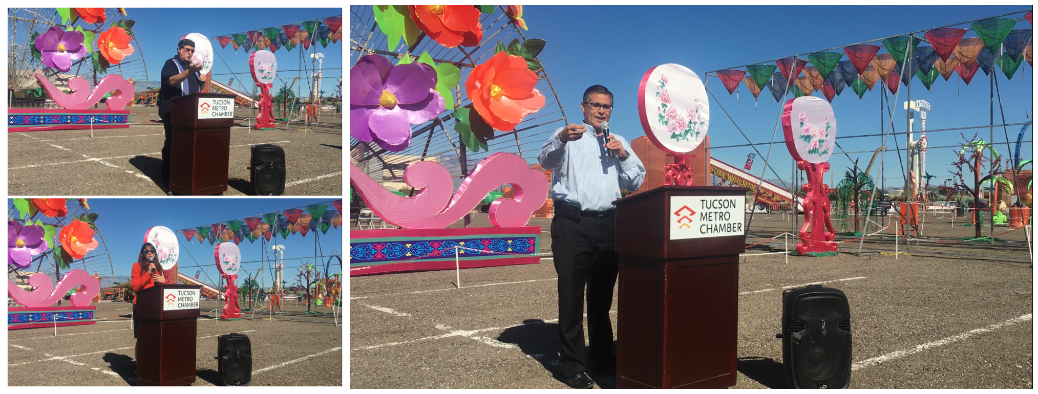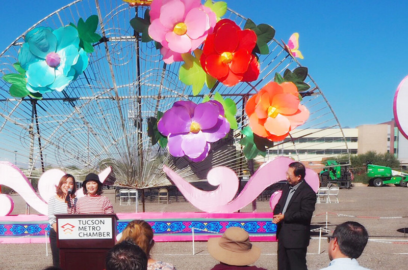 Pima郡行政長官Ramon Valadez,圖森市常務(wù)副市長Richard G. Fimbres,圖森市大都會(huì)商會(huì)董事長Amber Smith分別發(fā)表致辭,感謝本次燈展活動(dòng)對中美文化交流作出的巨大貢獻(xiàn),希望促進(jìn)多元化的世界文化交流。他們在講話中贊嘆東方彩燈精妙絕倫的制燈工藝,稱“2018世界之光圖森彩燈嘉年華”用傳統(tǒng)、時(shí)尚、新鮮、現(xiàn)代的元素直面美國觀眾。當(dāng)?shù)仉娕_(tái)、電視臺(tái)、報(bào)紙等17家新聞媒體出席新聞發(fā)布會(huì)并對燈展進(jìn)行了相關(guān)報(bào)道。