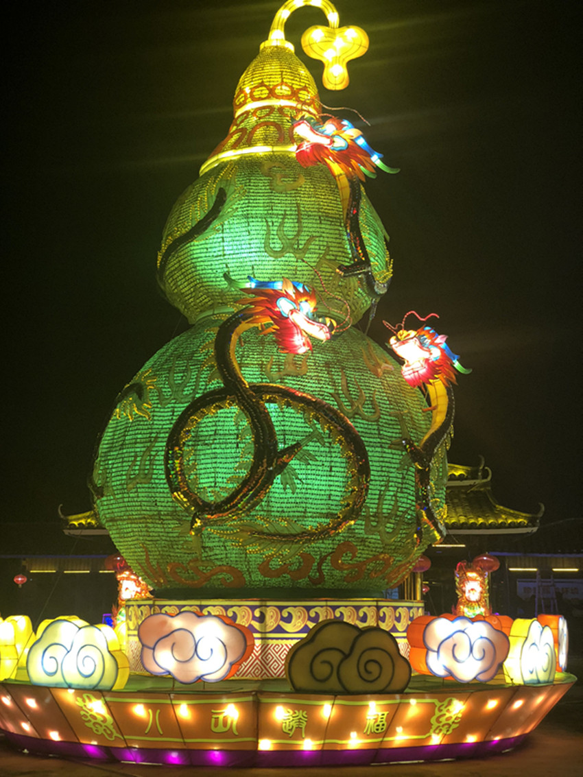 龍,中華民族的傳統(tǒng)象征,《二龍戲珠門》場(chǎng)景恢弘大氣。“五湖四海任遨游,岳山矗立花如海。龍脈潛在南渡江,騰龍啟程更輝煌”。