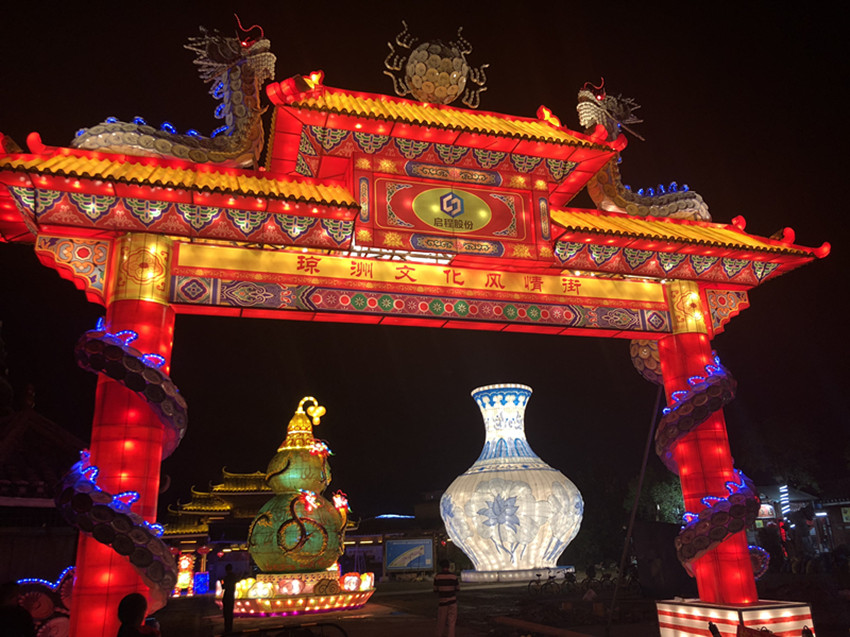 本次燈會(huì)以海南風(fēng)情為主題,燈品內(nèi)容與海南建筑、民俗有機(jī)結(jié)合,從構(gòu)圖、造型、工藝都突顯東方彩燈“精、細(xì)、巧、透、靈”的特點(diǎn)。《寶葫蘆》、《丹鳳朝陽》、《萬象更新》、《鄭和下西洋》等主題展區(qū),60余組設(shè)計(jì)新穎的彩燈燈組雄奇宏偉、色彩斑斕,仿佛一卷光影畫軸,向八方游客講述海南故事。
