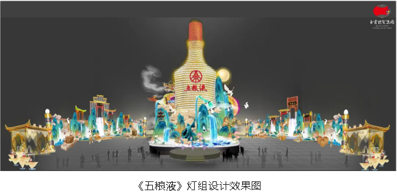 千年悠悠酒香,百年五糧精華。自貢燈貿(mào)集團(tuán)承制的大型場(chǎng)景式燈組《五糧液》,主燈采用第八代五糧液酒瓶運(yùn)用自貢彩燈傳統(tǒng)工藝?yán)υ删扌臀寮Z液,輔以仙山、仙境、巨龍騰越氛圍闡釋五糧傳奇,杯酒時(shí)光,百年味道。周邊群燈組展示封存在時(shí)光中的“活窖池”--利川永、張萬(wàn)和、劉鼎興、天賜福、聽(tīng)月樓、全恒昌等八家明代釀酒作坊,歷史悠久的古窖池群講述著傳承幾百年的五糧液釀酒工藝,折射幾千年氤氳酒香的中國(guó)酒歷史和酒文化。歲月悠悠,五糧芳香的故事將不停地續(xù)寫,在未來(lái)再創(chuàng)輝煌,歷久彌香,延綿不斷地傳承這千古佳釀。