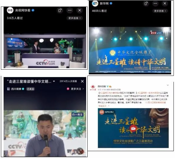 據(jù)了解,“走進(jìn)三星堆 讀懂中華文明”主題活動消息發(fā)布以來,人民日報、新華社、中央廣播電視總臺和泰晤士報、聯(lián)合早報、共同社等50余家中外主流媒體進(jìn)行了報道和轉(zhuǎn)載,其中,央視網(wǎng)、央視新聞、人民日報、新華社、四川日報、四川觀察等多家媒體進(jìn)行了活動直播,引起海內(nèi)外網(wǎng)友廣泛關(guān)注。