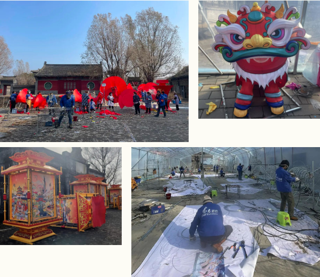 寒風(fēng)凜冽,雪花紛飛,制燈現(xiàn)場,到處是東方彩燈工匠們忙碌的身影。整個燈展工作正緊鑼密鼓地進(jìn)行中。