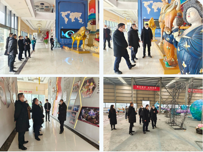 立法調(diào)研組一行人在集團(tuán)執(zhí)行總裁陶建軍陪同下首先參觀了集團(tuán)公司大廳展陳精品燈組“唐風(fēng)華韻”。隨后來到東方彩燈出口基地生產(chǎn)車間,第29屆自貢國際恐龍燈會(huì)燈貿(mào)集團(tuán)承制燈組的制作現(xiàn)場(chǎng),詳細(xì)了解了本屆燈會(huì)燈組制作的相關(guān)情況。